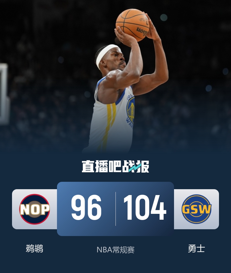库里伤缺勇士力克鹈鹕!巴特勒24+8+10 佩顿19+11 锡安25+7